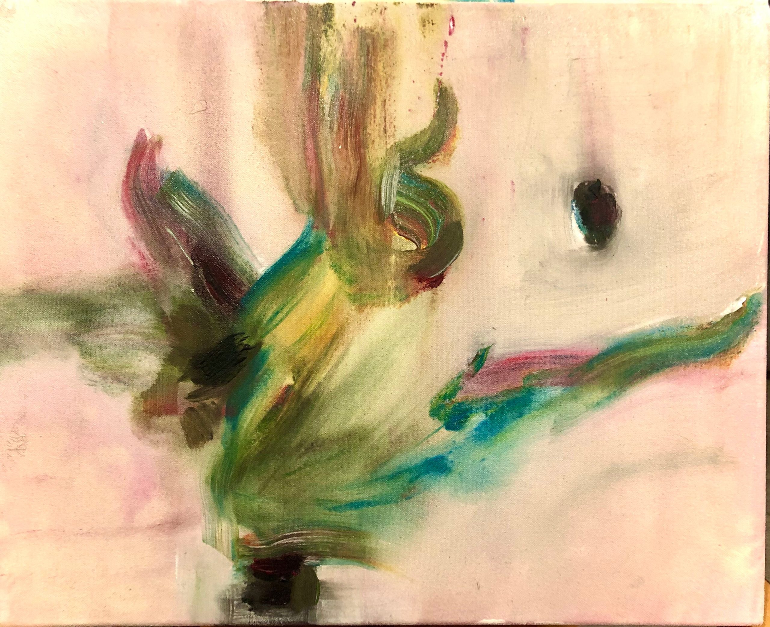 Fading 2, 2023, öljyväri ja muste kankaalle. 650€ 46x54cm.